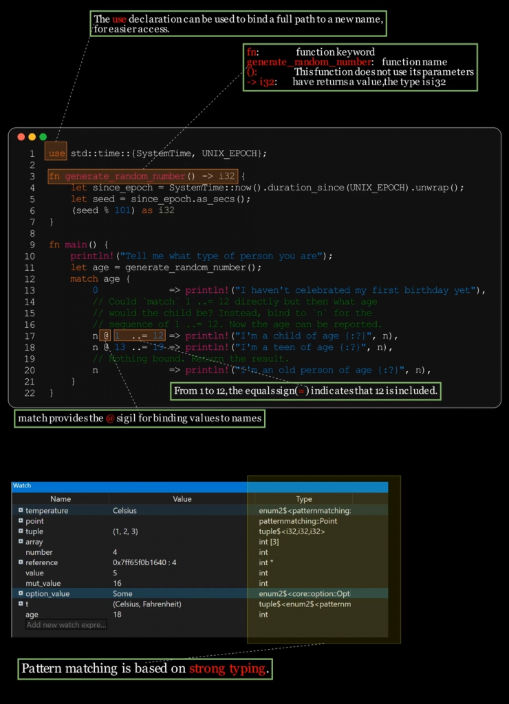 (x, y, z) => println!("Tuple values: {}, {}, {}", x, y, z),