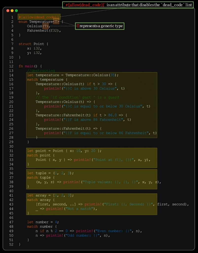 let t = (Temperature::Celsius(35), Temperature::<f32>::Fahrenheit(35.0));